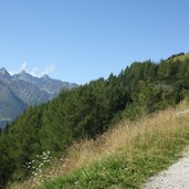 Ausgangspunkt unserer heutigen Wanderung im hintersten Ahrntal ist der Parkplatz unterhalb der Kirche von Prettau. Vom Dorfzentrum ausgehend folgen wir der Markierung in Richtung Waldner Alm, zunächst auf asphaltiertem Weg. Über den Dächern von Prettau geht die Straße in einen Forstweg über, der in den Wald führt - im Hochsommer ist man sogar in Prettau froh um etwas Schatten. Bald schon zweigt links ein kleiner Steig ab, der die Beschilderung "Waldner Alm" trägt.