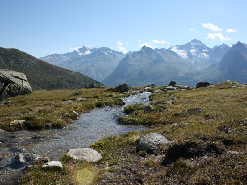 Dieser Steig verläuft steil durch den schönen Ameiser Nadelwald und ist ganz schön schweißtreibend. Über Stock und Stein, Wurzeln und Tannenzapfen gewinnen wir schnell an Höhe. Dann lichtet sich der Wald und der Pfad bringt uns wieder auf den Forstweg. Von hier ist auch schon die Waldner Alm zu sehen. Von der Alm genießt man ein super Panorama auf die Dreitausender des hinteren Ahrntales, wie Rötspitze und Dreiherrenspitze. Von der Alm geht es weiter über einen sehr schön angelegten Wanderweg, der uns durch ein Feuchtbiotop, durchquert vom dem plätschernden Weiherbach, führt. Die Mulde des Waldner Sees ist schon zu erkennen, das motiviert für die letzten Höhenmeter. Bald schon liegt er vor uns, der unberührte Waldner See mit seinem steinig-grasigem Ufer - nun ist es Zeit für eine ausgiebige Rast.
