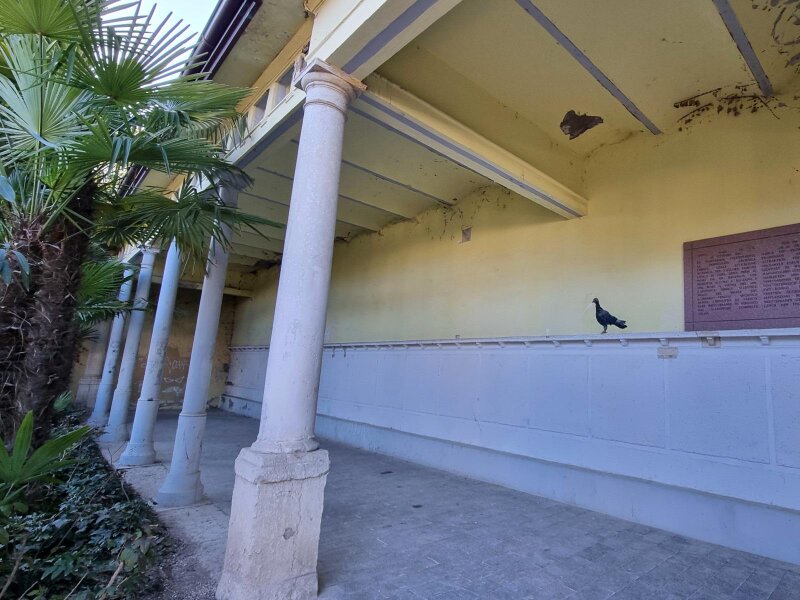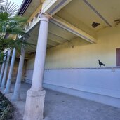 Nach einem Kaffee in der Sonne spazieren wir in den Stadtteil Rentsch, wo wir links bald das Schild "Oswaldpromenade" sehen. Die kleine Straße führt den Hang hinauf, der Blick öffnet sich auf St. Magdalena am Stadtrand, bekannt für die Weinhänge, an denen die Trauben für den Magdalener reifen. Beim Hotel Eberle, das seit einigen Jahren geschlossen ist, beginnt die Oswaldpromenade.