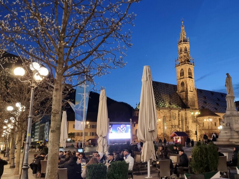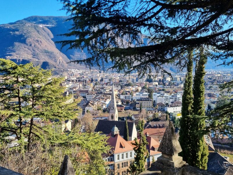 Die Promenade ist Erzherzog Heinrich von Habsburg gewidmet - Gries, heute ein Stadtteil, war einst ein bedeutender Luftkurort. Spaziergänger sind unterwegs und genießen den milden Tag. In Gries gönnen wir uns noch einen Aperitif im Freien, bevor wir über die Freiheitsstraße und die Talferbrücke zurück ins Zentrum kommen. Am frühen Abend erreichen wir den Waltherplatz. Ein herrliches Erlebnis, nicht zu anstrengend, mit Blicken auf Bozen, wie man es selten sieht.