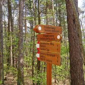 Diesem folgen wir und erreichen ein paar besonders schöne Aussichtspunkte über das Überetsch, den Kalterer See und das Südtiroler Unterland. Nach einer U-Kurve geht es zurück in Richtung Altenburg und schlussendlich ins Dorf, wo es mehrere Restaurants gibt - passend zur Mittagsstunde. Mit vollem Magen wagen wir uns an Teil 2 der Rundwanderung.