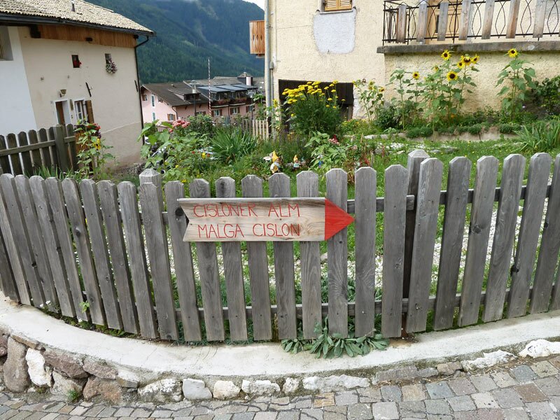 Bei leicht bewölktem Wetter beginnen wir diese Wanderung im Zentrum von Truden. Der Weg mit der Markierung Nr. 1 führt uns über eine im ersten Abschnitt asphaltierte und für ein Stück auch sehr steile Straße in Richtung Cislon Alm. Diese liegt, nach etwa 45 Minuten Gehzeit, auf einer breiten Terrasse mit grünen Wiesen und einem kleinen Weiher. Von hier aus hat man einen schönen Ausblick auf das Unterland und den Mendelkamm. (Nachtrag: Die Alm wurde 2016 neu gebaut und vergrößert, oben im Bild das neue Gebäude - Reservierungen: Tel. +39 0471 1889832).