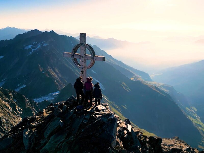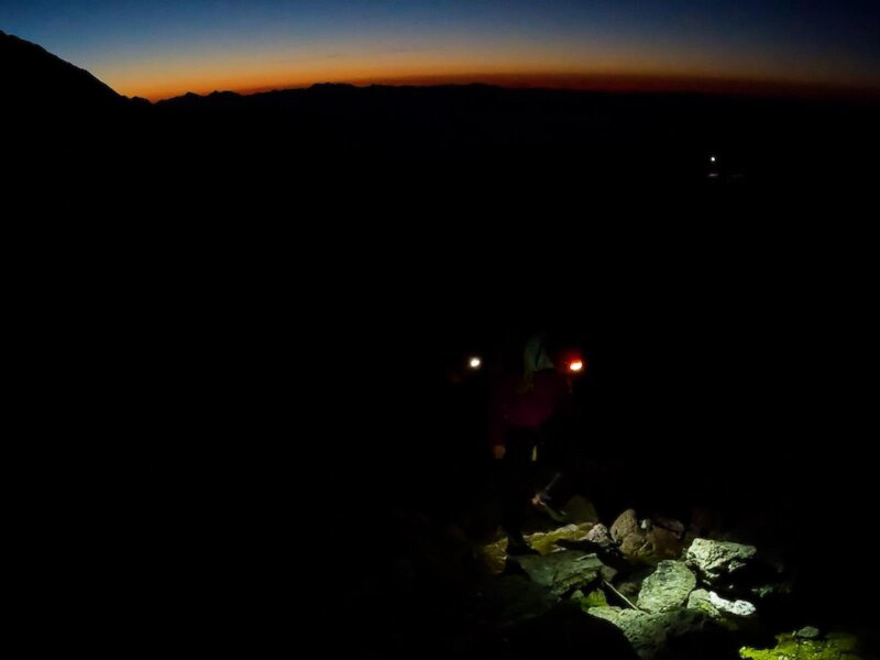 Zweimal queren wir dabei den Fernerbach. Danach führt die Hochtour weiter zur Zwickauer Hütte, die eindrucksvoll unter den vergletscherten Gipfeln liegt. Der letzte Abschnitt zur Hütte auf 2.989 Meter führt über Geröll und ist teilweise mit Stahlseilen gesichert. Wir übernachten auf der Zwickauer Hütte. Die Tour lässt sich ideal auf zwei Tage aufteilen, was uns die Gelegenheit gibt, die Schönheit der Berge zu einer ganz besonderen Zeit zu erleben: beim Sonnenaufgang.