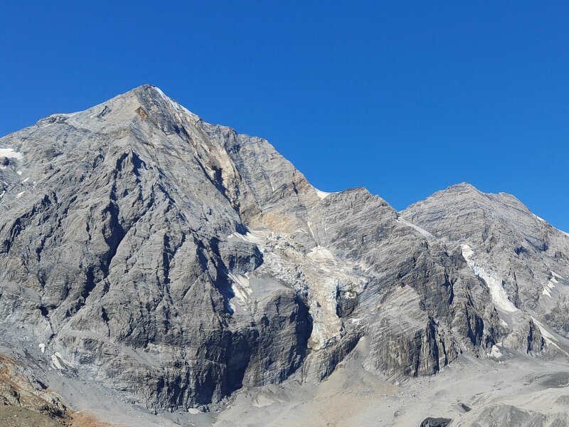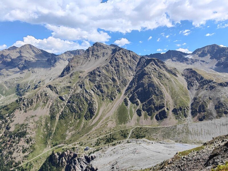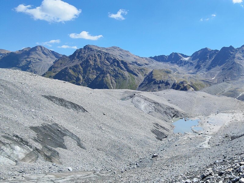 Unter dem Dreigestirn Königsspitze (3.851 m ü.d.M.), Zebrù (3.735 m ü.d.M.) und Ortler (3.905 m ü.d.M.) folgen wir dem Themenweg über Schutthalten und an einigen kleinen Gletscherseen vorbei. Gutes Schuhwerk und genug Trinkwasser sind hier unerlässlich - der Weg führt über Moränen und Schutt. Ab und zu geben die Gletscher hier noch Relikte des 1. Weltkrieges frei. Mitten am Gletscherweg befindet sich auf über 2.700 Meter der höchste Punkt der Wanderung.