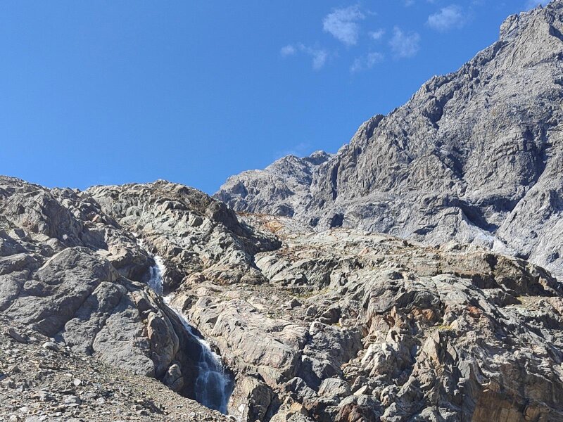 Schließlich erreichen wir die Hintergrathütte, die in den Sommermonaten bewirtschaftet wird. Hier, mitten im im Nationalpark Stilfserjoch, auf gönnen wir uns eine ausgedehnte Rast. Danach bringt uns der Weg Nr. 2 in relativ kurzer Zeit hinunter ins Tal. Bei unserer Ankunft in Sulden haben wir ab der Hütte rund 800 Höhenmeter überwunden. Ein unvergessliches Erlebnis im ewigen Eis!