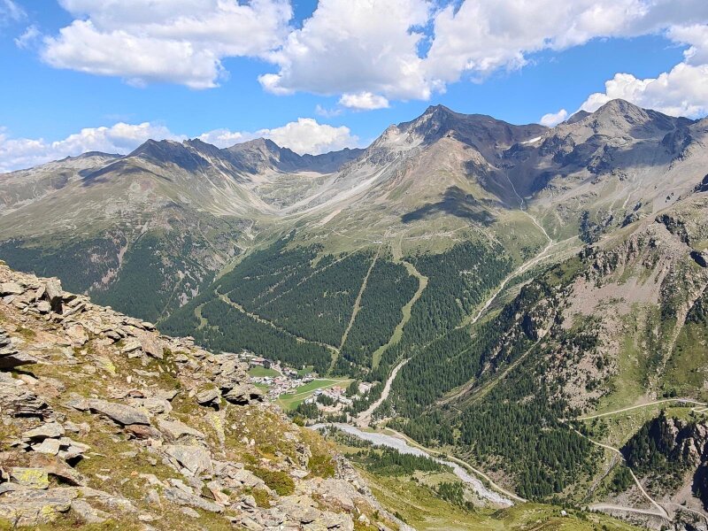 - Hintergrathütte (2.661 m ü.d.M.), danach Sulden (1.896 m ü.d.M.)