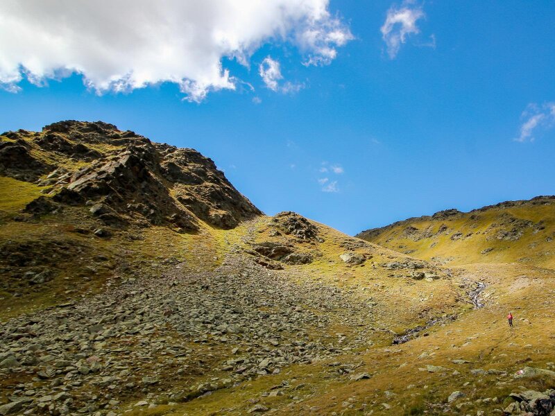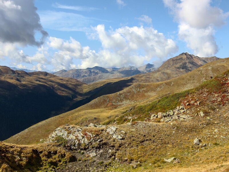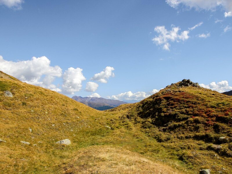 Die herrliche Bergtour im oberen Vinschgau zeigt uns noch die gesamte spätsommerliche Schönheit des Sesvenna-Gebietes, bevor der Herbst Einzug hält: In diesen Höhen kann es schon früh schneien. Wir nehmen die Kabinenbahn, die in St. Valentin auf der Haide im oberen Vinschgau startet und uns zur Haider Alm bringt: Sie ist im Winter ein beliebtes Skigebiet.