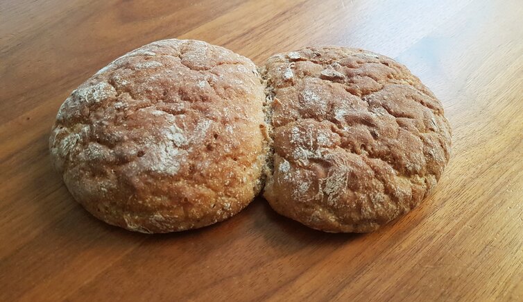 Das "Vinschgerle" ist ein handtellergroßes, 2-3 cm dickes Fladenbrot, das paarweise gebacken wird und aus zwei Arten von Teig besteht: Der Vorteig aus Roggenmehl, Wasser und Hefe muss eine Stunde ruhen, bevor der eigentliche Teig dazugegeben wird. Roggenmehl, Weizenmehl, Wasser, Hefe und die typischen Gewürze gehören dort hinein: Salz, Fenchel, Kümmel und Brotklee, den man im Pustertal und Eisacktal als Zigeunerkraut kennt. Bei 220° C wird das Paarl dann gebacken.