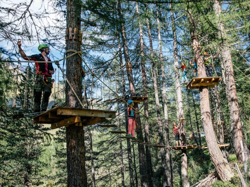 Hoch hinaus: In einem kleinen Wald in Pfelders im Passeiertal gibt es vier Parcours mit abwechslungsreichen Übungen