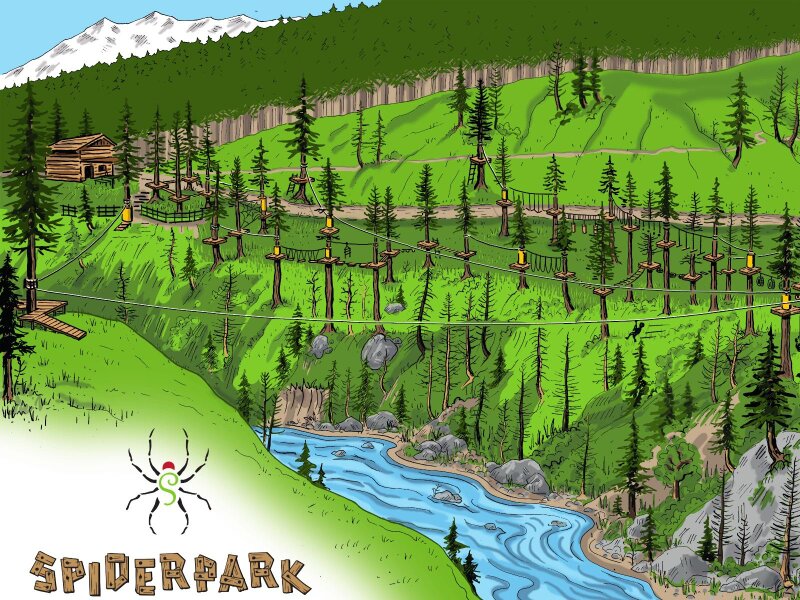 Die vier Parcours des SpiderParks, von leicht bis mittelschwer, wurden hier über eine Länge von 85 Meter angelegt. Sie reichen bis 18 Meter Höhe hinauf, während der Zipline-Parcours bis zu 40 Meter Höhe erreicht. Die vier Ziplines (ab 10 Jahren) führen über den Pfelderer Bach, dem Bergbach, der das gesamte Pfelderer Tal im Naturpark Texelgruppe durchfließt.