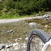 Ein bisschen Schieben ist aber bei solch ausgewaschenen und steilen Böden keine Schande. Oben genießen wir die Aussicht auf die Dolomiten und das Hüttenmenü. Die Abfahrt erfolgt dann am selben Weg. Kurze Variante: Wer die Tour abkürzen und als reine MTB-Tour fahren will (nur Forststraßen und Bergwege), kann mit dem Auto nach Latzfons bis zum Parkplatz Kühhof fahren und von dort aus starten. Kilometer, Höhenmeter und Fahrtzeiten reduzieren sich um ca. 60%.