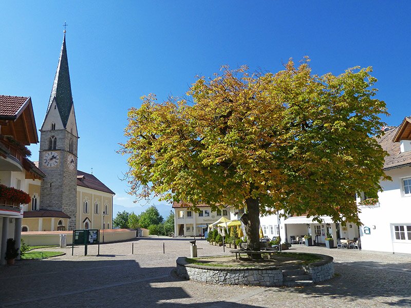 Bruneck, der bezaubernde Hauptort des Pustertales, ist Ausgangspunkt unserer Fahrradtour über die Sonnenstraße. Vom Bahnhof geht es nach Stegen, wo wir bei der Nikolauskirche den Kreisverkehr am Nordring erreichen. Wir überqueren die Brücke über die Ahr und biegen am westlichen Flussufer in die Sonnenstraße in Richtung Pfalzen ein.