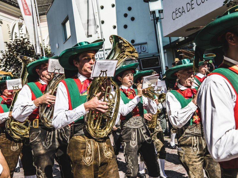 Musikkapellen spielen an diesem Tag traditionelle und moderne Stücke, Volkstänze werden aufgeführt, regionale Speisen und Getränke sorgen für das leibliche Wohl und werden an den Ständen aufgetischt, kurzum: Es wird ordentlich gefeiert! Zu religiösen Festen, manchmal auch zu Hochzeiten, wird die Grödner Tracht heute noch mit Stolz getragen. Ein weiterer Trachtenumzug findet in Kastelruth statt: die Kastelruther Bauernhochzeit.