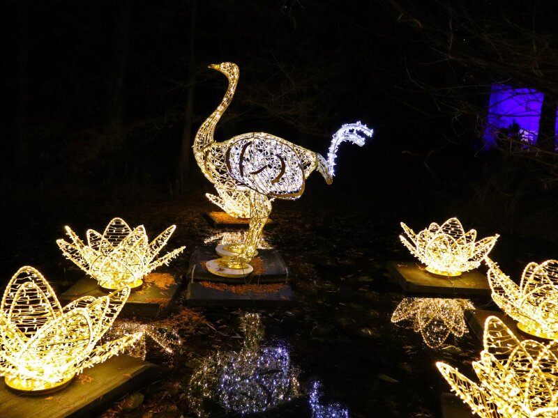 Besonders eindrucksvoll ist das Erlebnis bei Dunkelheit. Deshalb öffnet der Lichterpark am späten Nachmittag, wenn die Dämmerung über der Kurstadt hereinbricht, und bleibt bis rund 21 Uhr zugänglich. Wenn du auf den Wegen spazierst, auf denen in wenigen Monaten wieder die prächtigsten Blumen blühen, tauchst du in eine Welt aus Licht und stimmungsvollen Szenen ein.