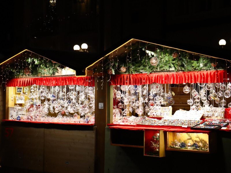 - Kurpromenade vor dem Kurhaus Meran: Zentrum des Christkindlmarktes mit dem Solidaritätshäuschen und der Stube des Handwerks