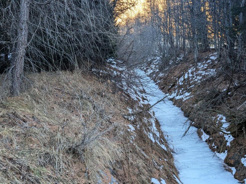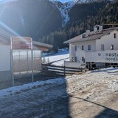 Es ist ein bekannter Treffpunkt für Langläufer und Biathleten, an dem internationale Wettbewerbe ausgetragen werden. Direkt beim Langlaufzentrum beginnt der breite Winterwanderweg, der uns meist im Schatten über die verschneiten Almwiesen führt. Der Weg Nr. 1 ist einfach und mit etwas Glück kann man auch Wildtiere beobachten. Wir überqueren den kleinen Schliniger Bach.