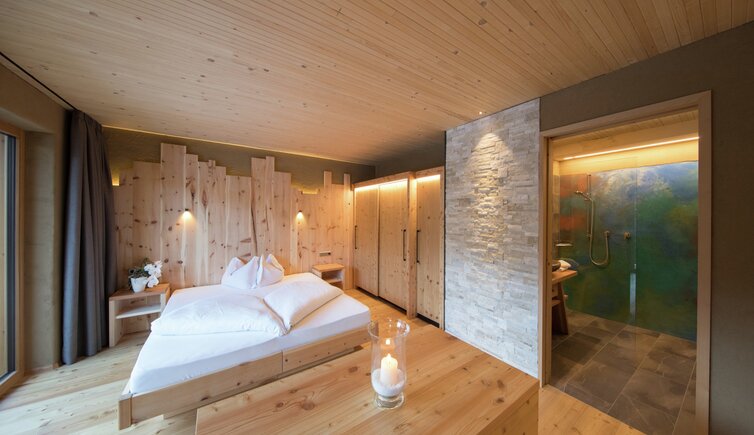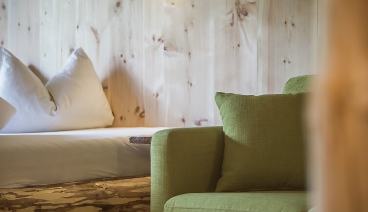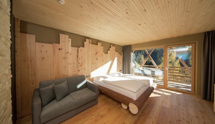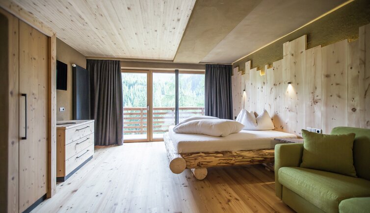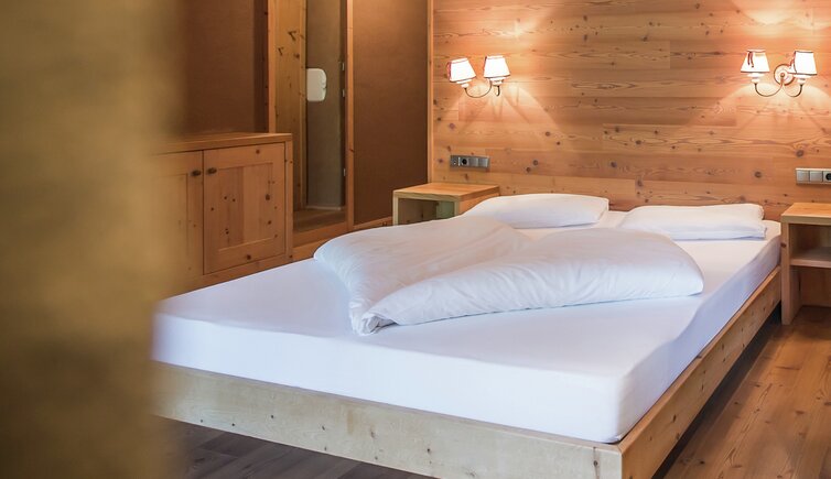 Die mit Lärchen-, Fichten- und Zirbelholz ausgestatteten Wohlfühlzimmer sorgen für einen bezaubernden Duft und einen erholsamen Schlaf.