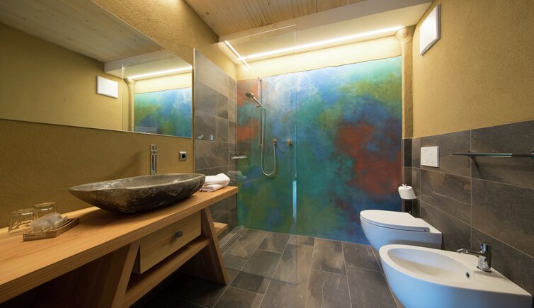 Gönnen Sie sich nach einem erlebnisreichen Tag in den Bergen, einen Abstecher in den Wellnessbereich mit finnischer Sauna, einem Whirlpool mit Blick auf die Latemartürme und mit einer in die Felsen gebaute Massagedusche.