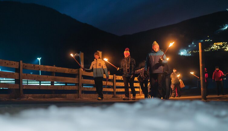 Jeden Montagabend erstrahlt Olang in einer ganz besonderen Atmosphäre: Bei der Fackelwanderung kannst du das winterliche Dorf im warmen Schein der Fackeln auf magische Weise entdecken. Die gemütliche Wanderung dauert etwa 45 Minuten und führt dich durch die verschneite Landschaft – ein echtes Highlight für Groß und Klein. Die flackernden Lichter verleihen der Tour eine einzigartige Stimmung und machen diesen Abend zu einem unvergesslichen Erlebnis für die ganze Familie.