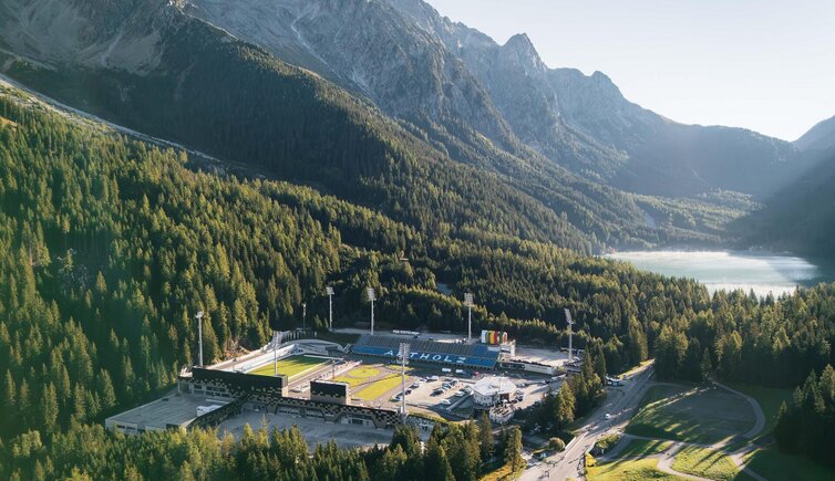 Auf den Spuren der Biathlon Elite: Seid gespannt auf die große Sportstätte, in der bereits zahlreiche internationale Wettkämpfe abgehalten und Weltmeister und Olympioniken gekührt wurden.