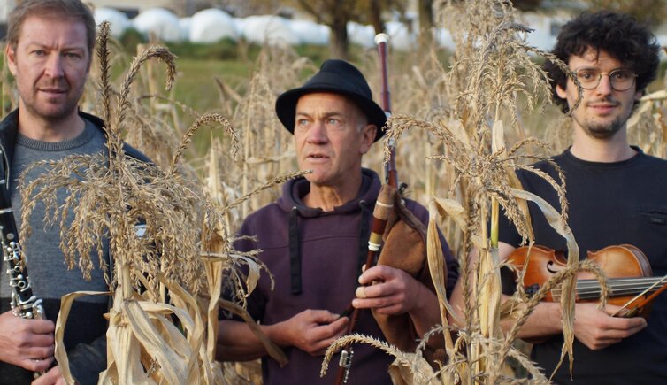 Drei Musikanten, ein Klangraum, Musikinstrumente und Ohren, mehr braucht es nicht. Dann gibt es Südtiroler Volksmusik, irische Tunes, finnische Polskas, jiddische Lieder oder französische Mazurken - Bordun ebenso willkommen wie Polyphonie oder schlichte Zweistimmigkeit.