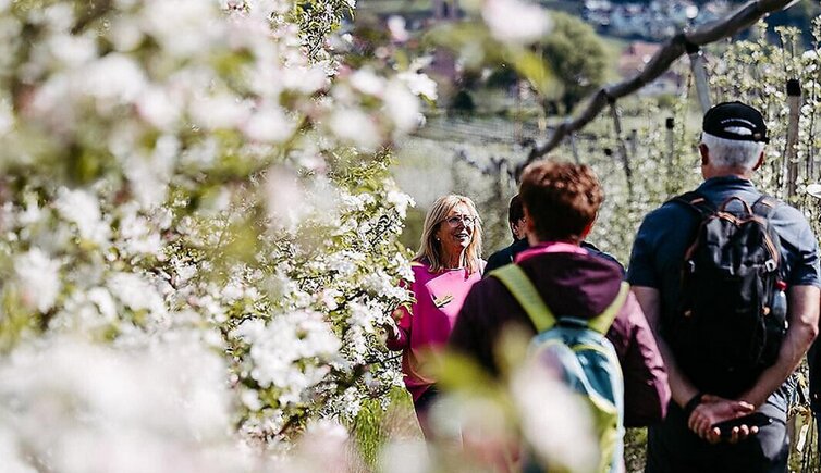 Im April verwandelt sich Andrian in ein weiß-rosa Blütenmeer. Beim Erlebnis Apfelblüte spazieren wir gemeinsam durch die blühenden Apfelwiesen Südtirols, umgeben von Tausenden duftenden Apfelblüten. Der zarte Frühlingsduft liegt in der Luft, die Natur erwacht – und wir nehmen uns Zeit, diesen besonderen Moment bewusst zu genießen.