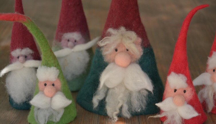 Wir gönnen uns eine kleine Auszeit und fertigen in der Nass-Filz-Technik aus heimischer Schafwolle lustige Zwerge und Wichtel mit süßer Knubbelnase.