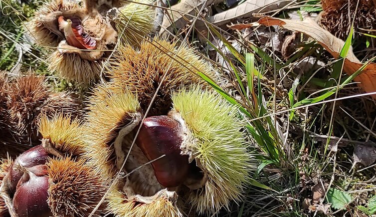 Herbstliche Genussmomente am Dorfplatz: das traditionelle Kastanienbraten. Andrianer Kastanien vom Kastanienhain am Schlosspichl werden direkt über dem Feuer gebraten. Dazu gibt es Most, Apfelsaft und die Weine der Kellerei Andrian und süße Kastanienspezialitäten.
