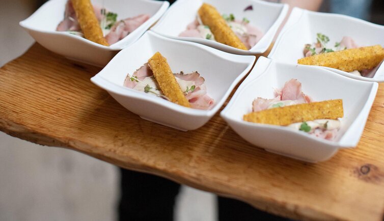 Eine kulinarische Kulturwanderung durch Meran. Geführte dreistündige Genusstour zu Fuß durch Meran. In kurzer Zeit miterleben, was Meran kulinarisch so begehrenswert macht. Exquisite Köstlichkeiten genießen, Südtiroler Kultur fühlen, Geschichten lauschen und die Menschen dahinter kennenlernen.
