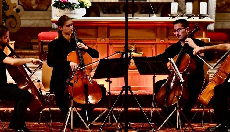 Die vier Cellisten gehören verschiedenen Generationen an, doch im gemeinsamen Musizieren gibt es keine Unterschiede. Sie haben umfassende musikalische Aus-bildungen in Südtirol und auch im Ausland erhalten. In diesem Konzertprogramm, gemeinsam mit Andreas Benedikter an der Orgel, kommen kontrastierende und spannende Werke zur Aufführung. Dazwischen gibt es Improvisationen an der Orgel, die sich auf soeben von den Cellisten gespielte Melodien und Stücke beziehen. Der weiche und warme Klang eines Celloquartetts trifft auf die Kraft und Spiritualität der Orgel.