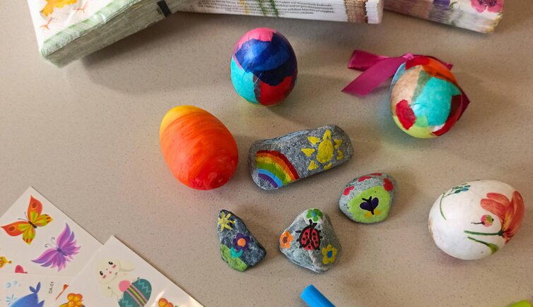 Am Gründonnerstag, den 02. April 2026, können Kinder von 10:00 bis 12:00 Uhr ihrer Kreativität freien Lauf lassen und bunte Osterkunstwerke gestalten. Ob mit Seidenpapier, Acrylfarben oder Serviettentechnik – hier entstehen einzigartige Ostereier. Auch beim Bemalen von Oster-Steinen sind Fantasie und Spaß garantiert!