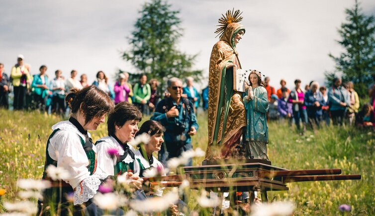 Heute führt die religiöse Prozession zur Wallfahrtskirche La Crusc/Heiligkreuz wo der Gottesdienst um 09:30 Uhr abgehalten wird.