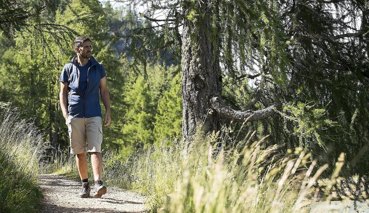 Von Mitterplars folgen wir dem alten Burgweg, der früher zum Schloss Tirol geführt hat, durch die Weingärten hinauf zum Café Konrad, wandern ein kleines Stück auf dem Algunder Waalweg in Richtung Vinschgau und zweigen bald auf den Großen Schlundensteinweg ab. Dieser führt uns mäßig steil zum schönen Ort Vellau. Neben der Bergstation des Sesselliftes kehren wir in einem gemütlichen Lokal zur Stärkung ein und genießen den Blick in den Vinschgau. Weiter geht es über den „Saxnerweg“ leicht abwärts nach Partschins.