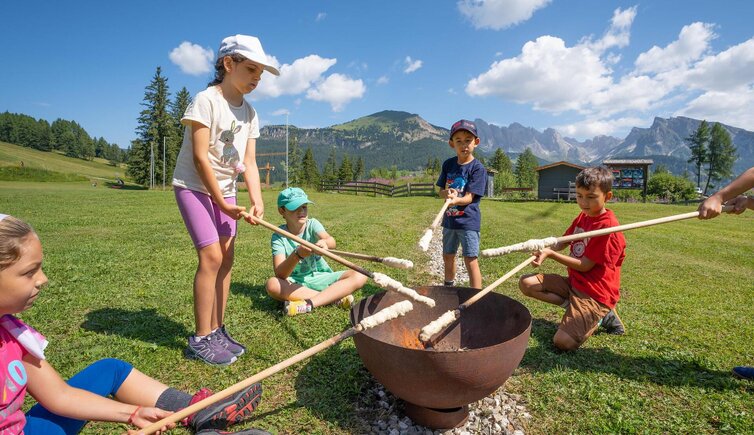 Zuguterletzt kommen die Kinder noch in den Genuss von selbstgebackenem Stockbrot am knisternden Lagerfeuer!