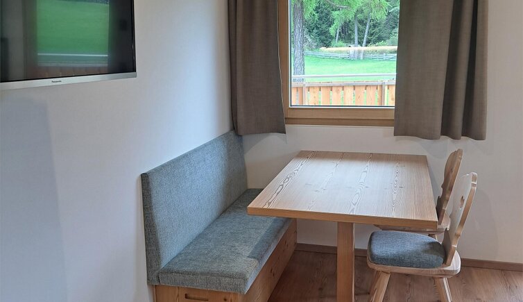 Der Fußboden sowie die Möbel bestehen aus Holz und Massivholz das den Unterkünften eine alpine Atmosphäre verleiht.
