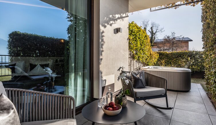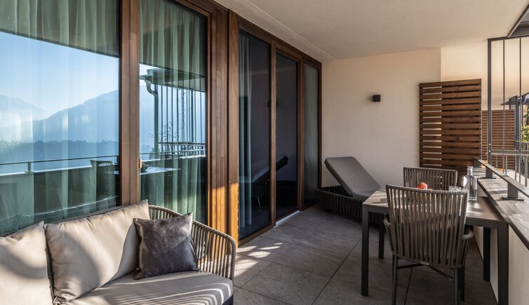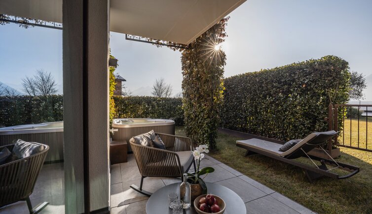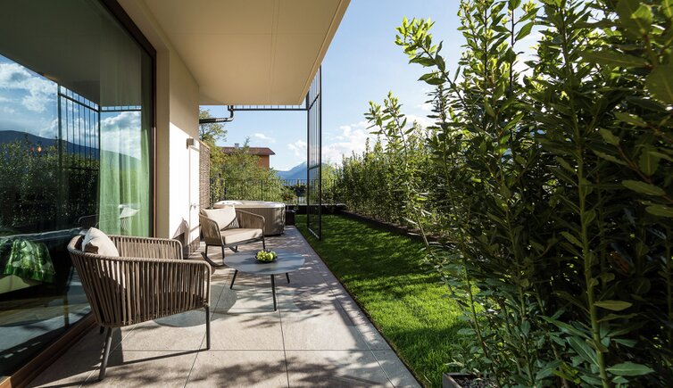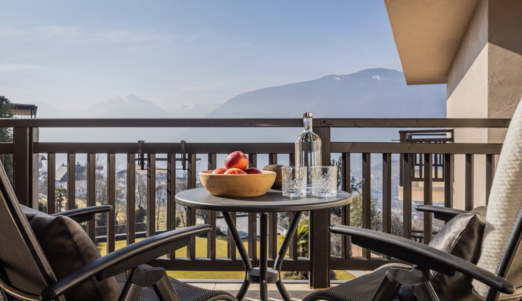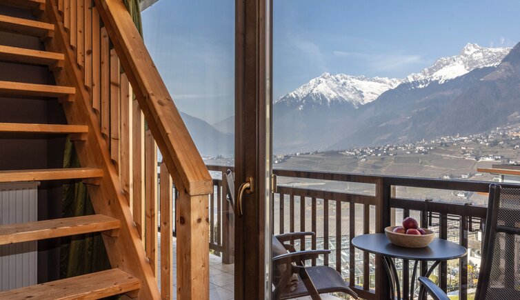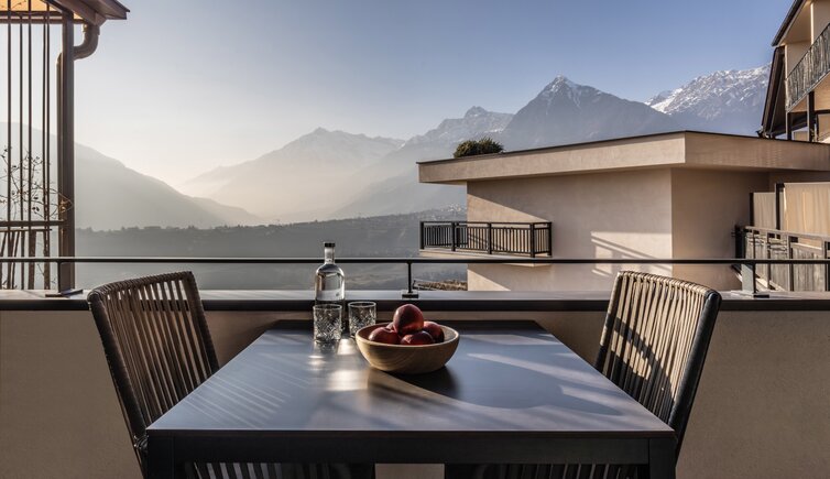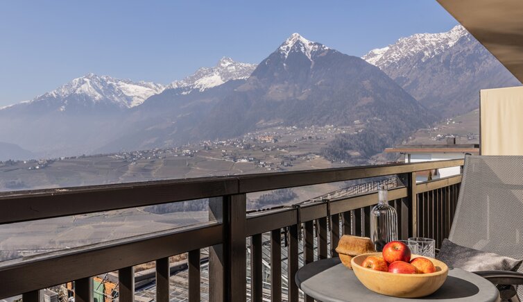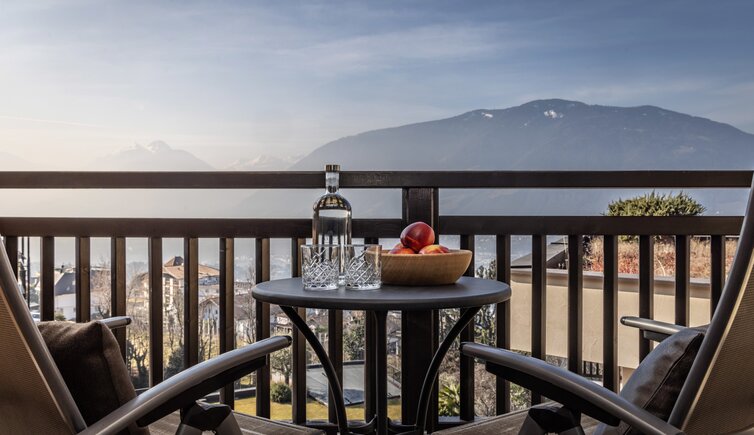 Idealer Ort zum Entspannen und Genießen, mit Blick auf die umliegende Meraner Bergwelt.