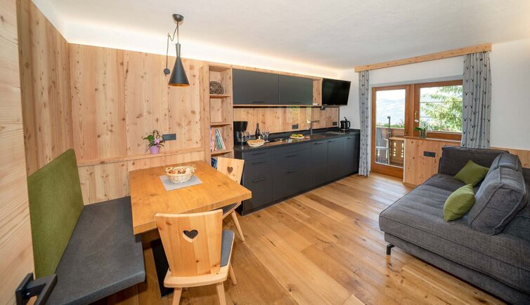 Die beiden Appartements „Föhrenwald“ und „Lärchenwald“ sind liebevoll und sorgfältig eingerichtet. Sie verfügen jeweils über einen eigenen Eingang mit Vorraum, Garderobe, Küche, Wohnraum, Bad und Schlafzimmer.