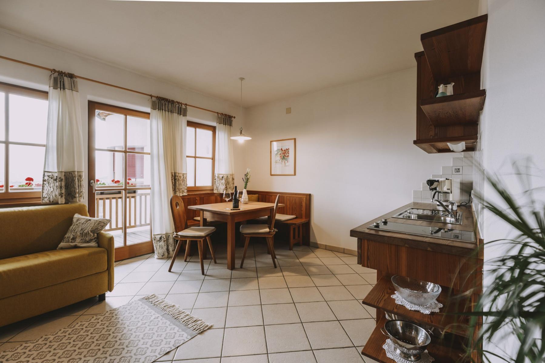 In den komfortablen und modern ausgestatteten neuen 4 Appartements mit wunderbarer Aussicht auf die umliegenden Weinberge, Schlösser und Burgen können Sie Ihre Ferientage voll genießen.