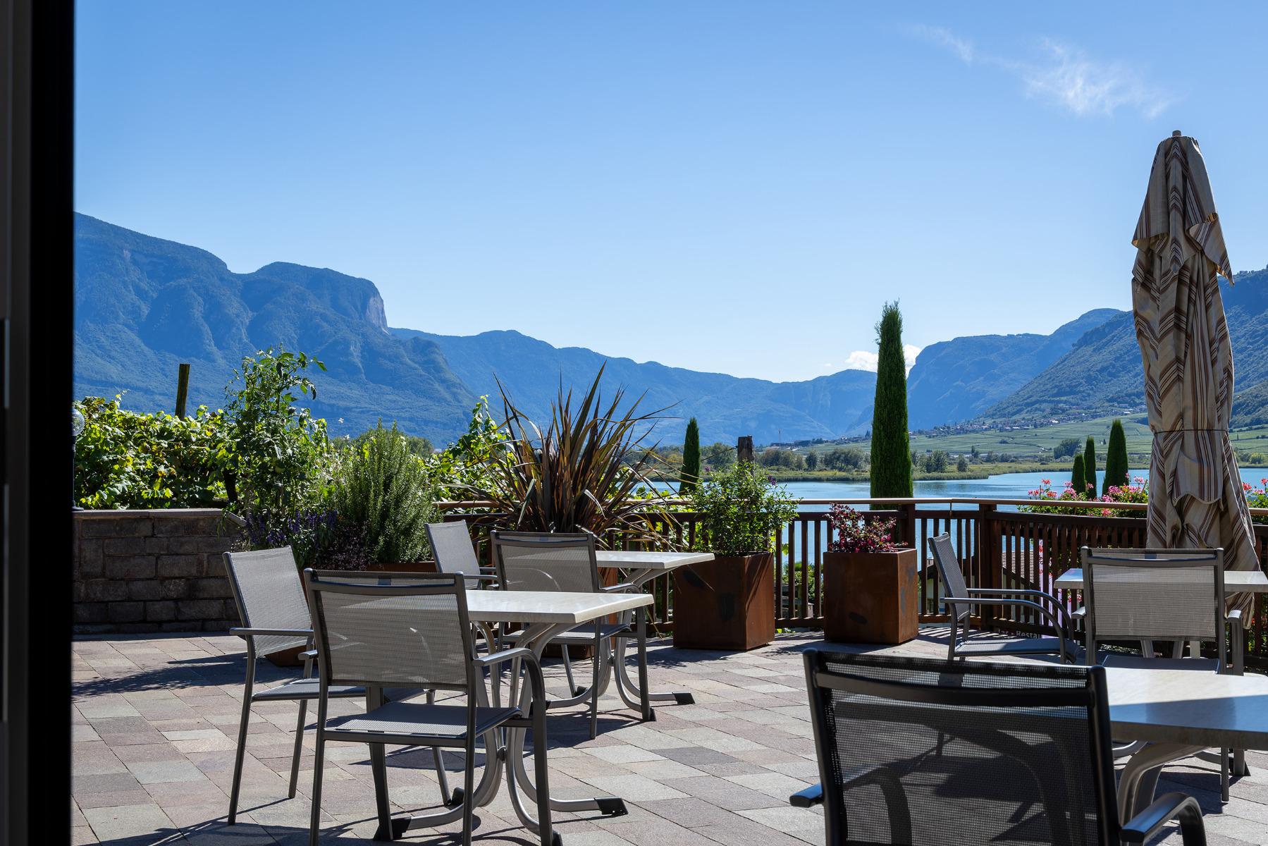 Morgens erwartet Sie ein Frühstücksbuffet mit regionalen und saisonalen Produkten. Mit Blick von der Frühstücksterrasse direkt auf den Kalterer See lässt sich der Tag atemberaubend beginnen.
