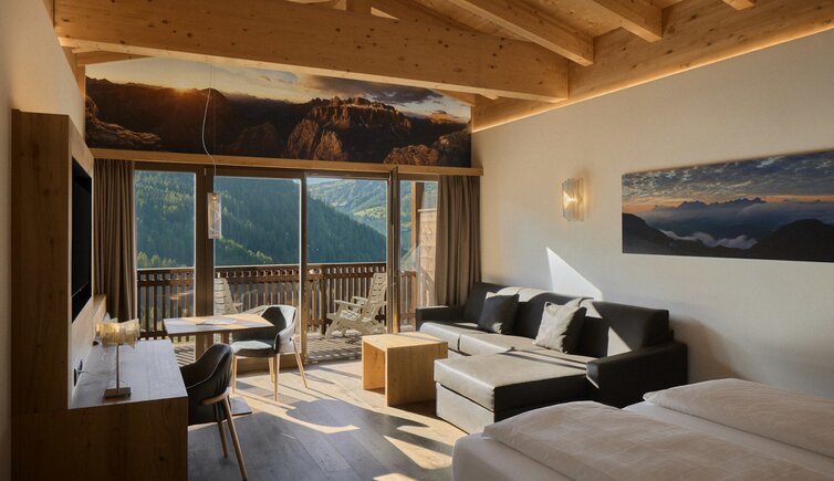 Inmitten der Südtiroler Dolomiten, oberhalb von Corvara auf fast 1.700 Metern Höhe, befindet sich das Sporthotel Panorama – eine Welt voller Entspannung und Genuss.