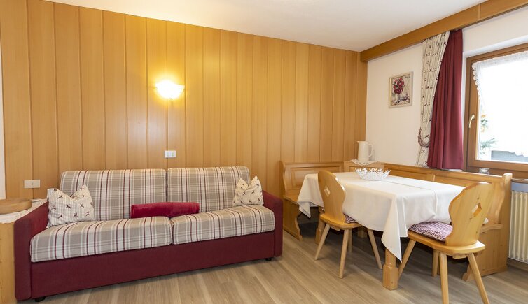 Von den Appartements hat man eine herrliche Aussicht auf die steilen Wände des Kreuzkofels, sowie auf den Piz la Ila und die Sellagruppe.