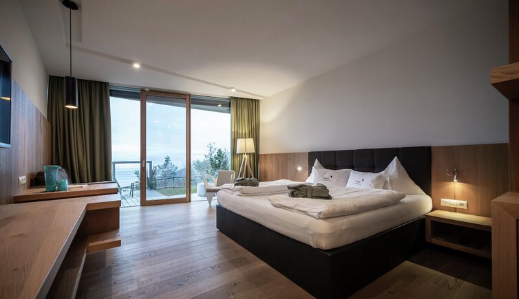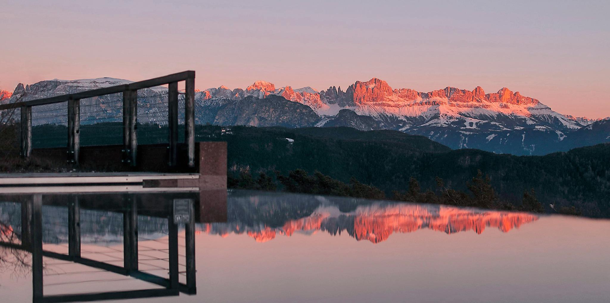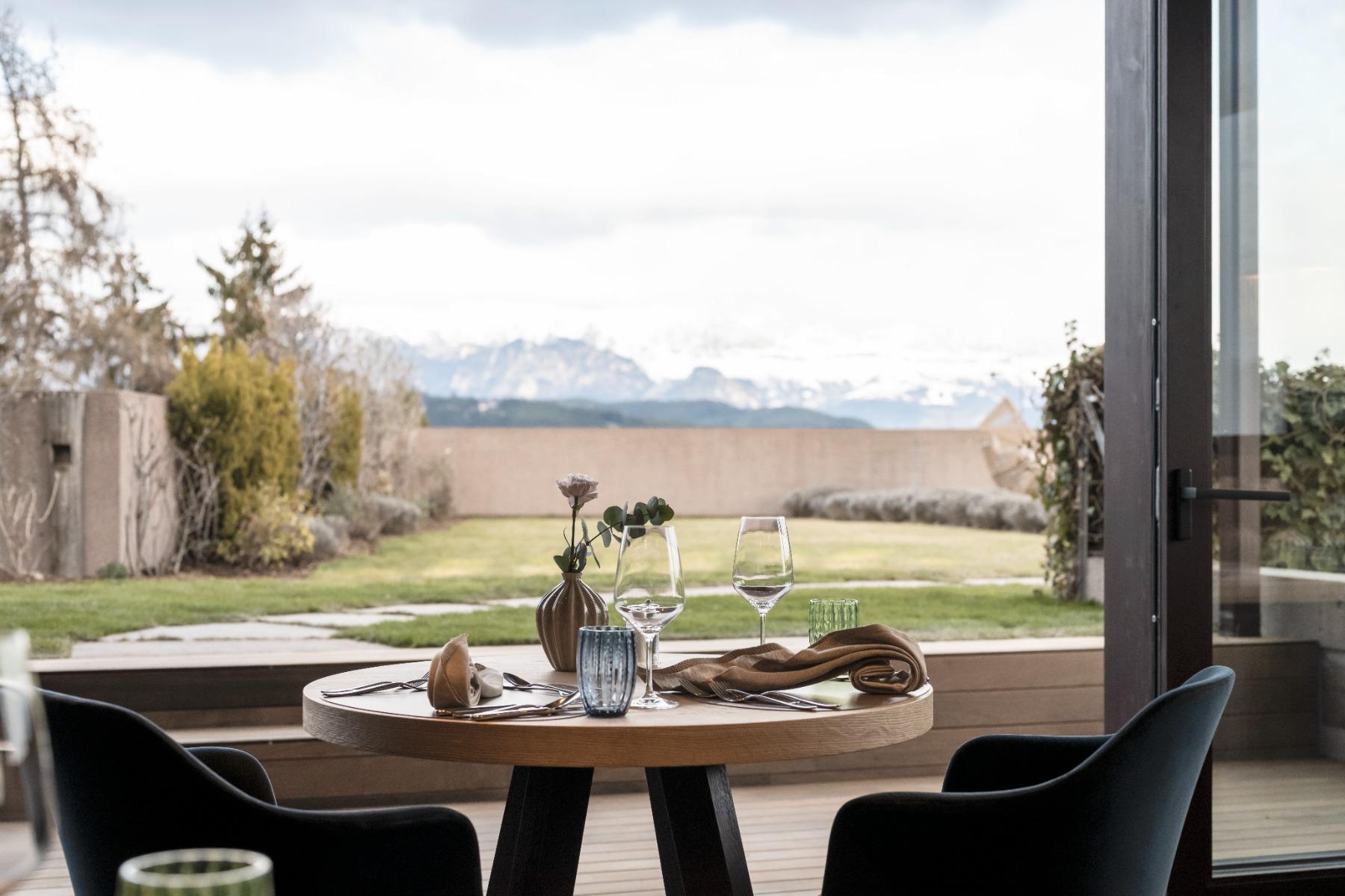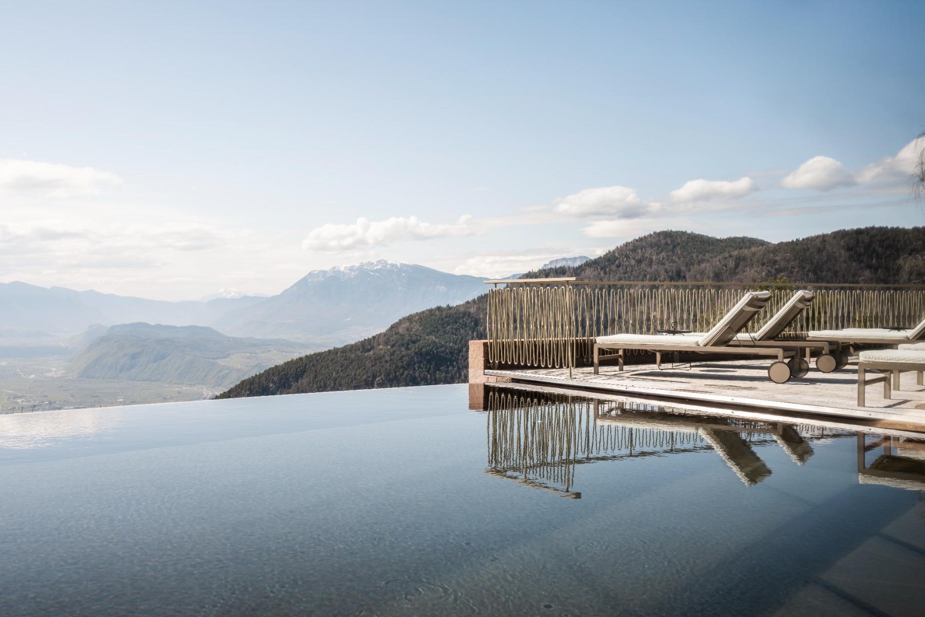 Das Panorama ist allgegenwärtig im Hotel „Belvedere“ auf 1100 Metern oberhalb von Bozen, nur eine kurze Autofahrt von der italienischsten aller Südtiroler Städte entfernt.