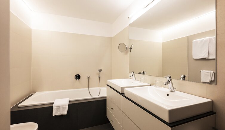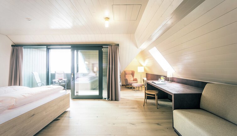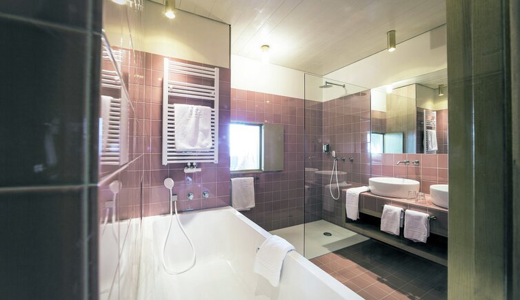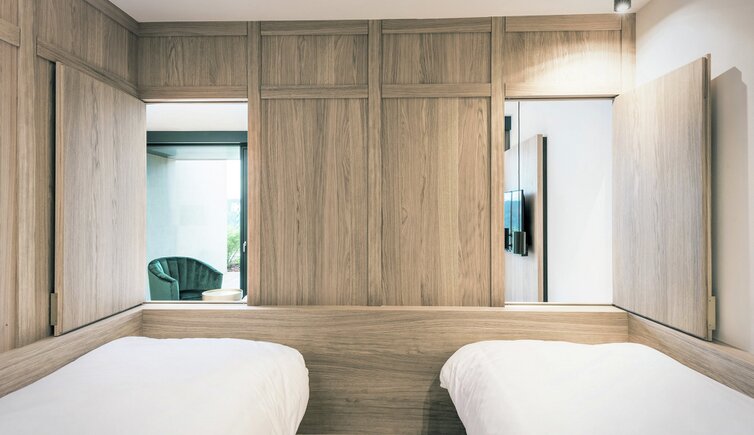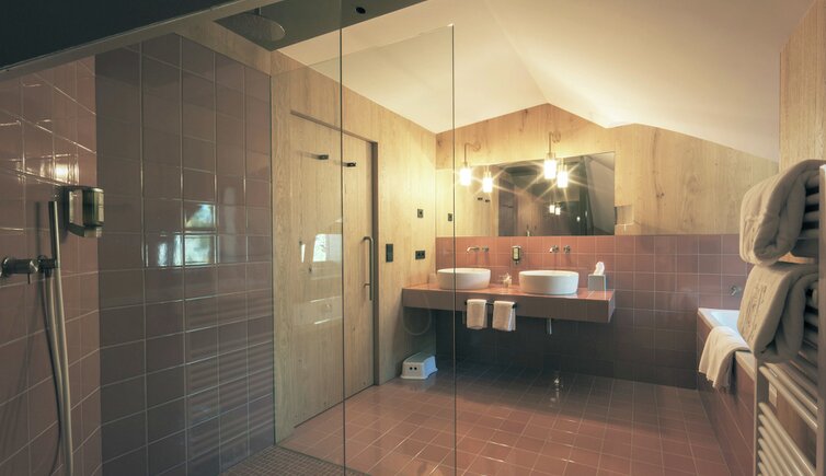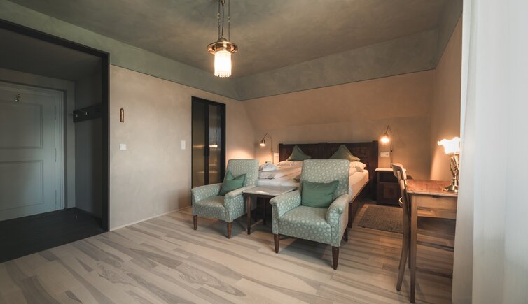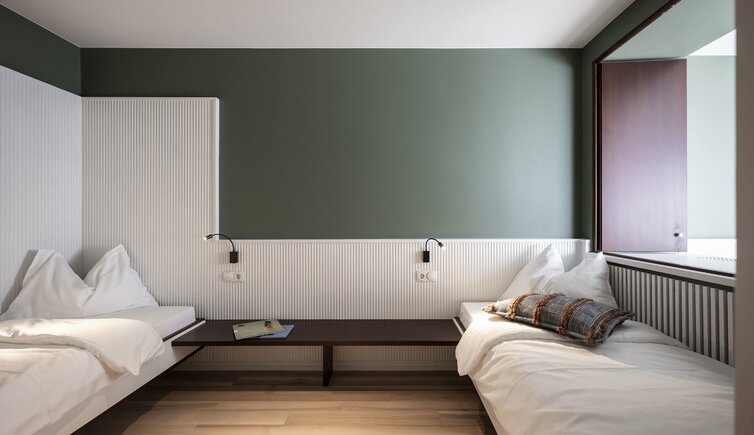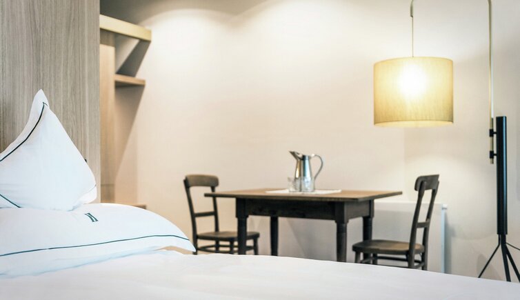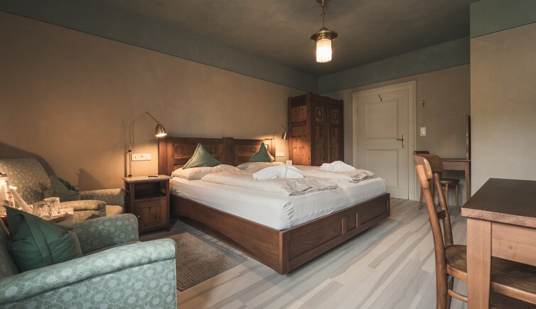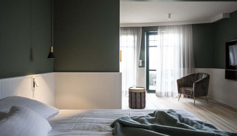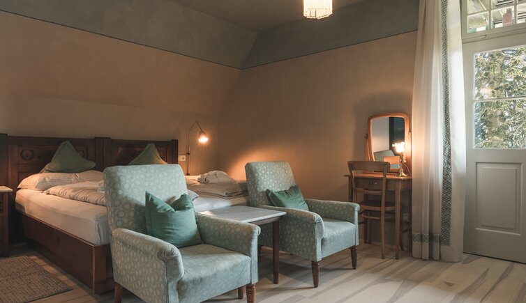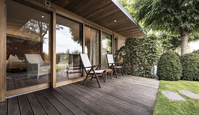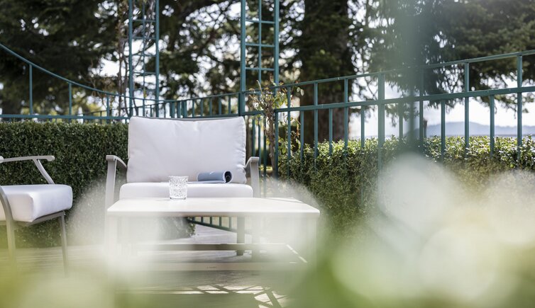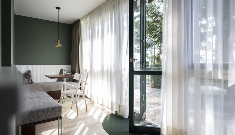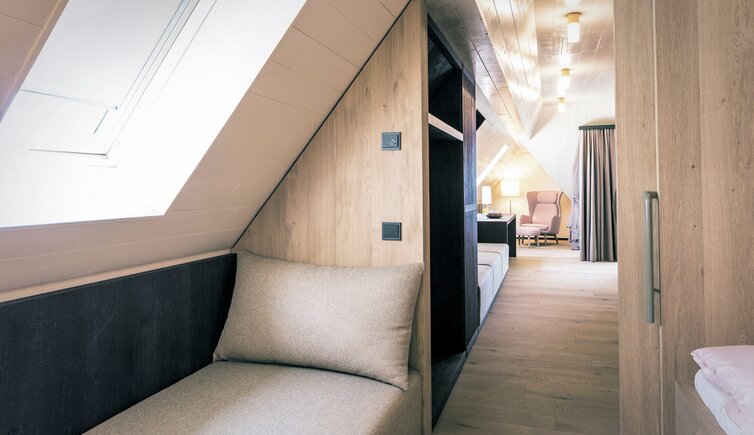 Ebenso einmalig sind die neuen, modern ausgestatteten Zimmer im Erdgeschoss mit eigenen Gärtchen, die Junior-Suiten im Park, die ungeheure Intimität und Ruhe versprechen, die Vajolet-Suiten im Penthouse und die neue Schlern-Suite.