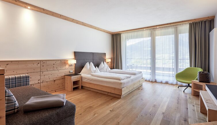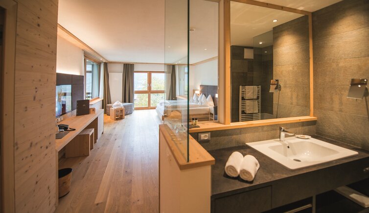 Die Zimmer und Suiten sind hochwertig und modern mit Naturholzmöbel und -böden eingerichtet und laden zu einem gemütlichen und erholsamen Aufenthalt ein.