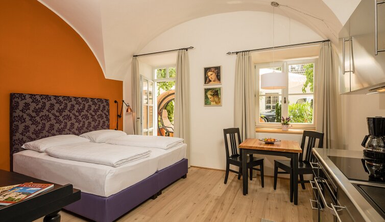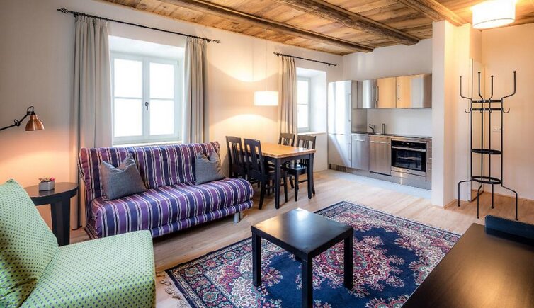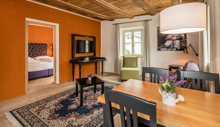 Unser Appartmenthaus (neu seit 2016) befindet sich nur 60 Meter vom Hotel-Haupthaus entfernt und bietet in historischem Gebäude komfortable Ferienwohnungen in modernem, gehobenem Stil (mit WIFI + 38Zoll TV+ Brixen Card + Rabatt in unserem nahen Restaurant).