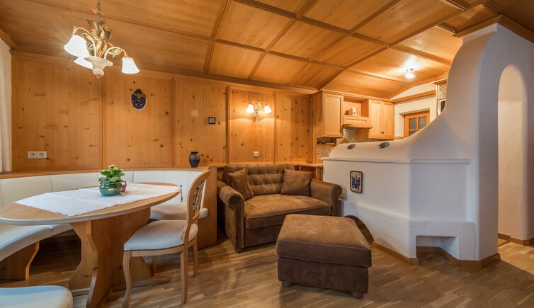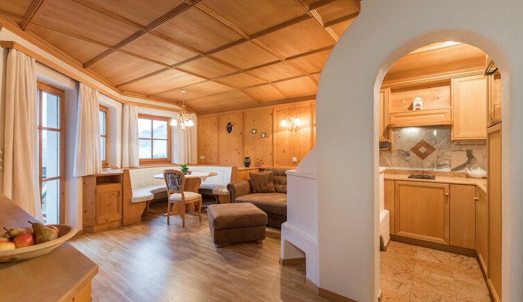 Die traumhaften Apartments sind mit Naturholzverkleidungen und -möbeln, einer Stube mit Kachelofen und Sat-TV, einem Marmorbad (teilweise mit Whirlpool), einer voll ausgestatteten Küche und einem Balkon ausgestattet.