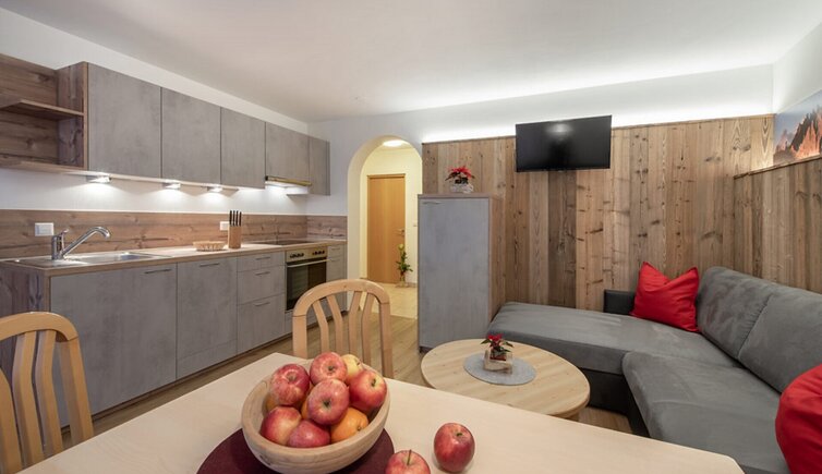 In unseren fünf Ferienwohnungen bei Meransen können Sie Ihren Urlaub völlig flexibel selbst gestalten. In den modern und funktional eingerichteten Küchen mit allen notwendigen Utensilien haben Sie die Möglichkeit, sich komplett selbst zu versorgen. Oder Sie nehmen unseren Brötchenservice in Anspruch und bekommen so jeden Morgen frische Brötchen nach Ihrer Wahl geliefert. Gerne bereiten wir Ihnen aber auch ein gesundes und schmackhaftes Frühstück in unserem Frühstücksraum zu. In Zusammenarbeit mit dem gleich nebenan liegenden Panoramahotel Huberhof, das ebenfalls von unserer Familie betrieben wird, bieten wir auch Halbpension. Oder Sie stellen sich im erstklassigen Restaurant dort eine Vollpension á la Carte zusammen.