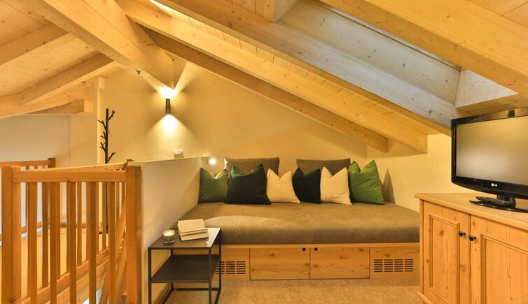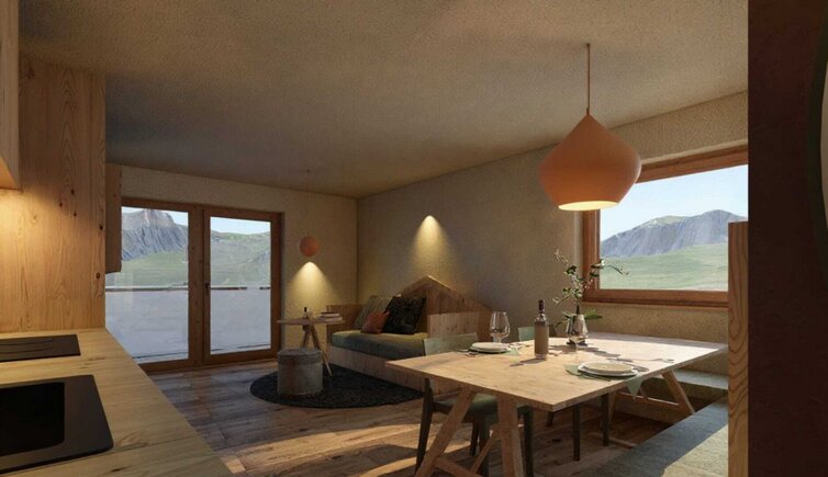 Die Einrichtung des gesamten Hauses ist im alpinen Stil geplant – einladend und mit natürlichen Materialien gestaltet.
