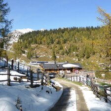 Von Spinges aus bringen dich Wanderwege zur bewirtschafteten Anratter Hütte. Die Tour kannst du auch mit dem Mountainbike bewältigen und sie eignet sich in der kalten Jahreszeit ebenso als Winterwanderung. Neben Streichelzoo und Spielplatz sind hier besonders die Knödel beliebt: Täglich stehen 15 verschiedene Knödelsorten und -gerichte zur Auswahl.