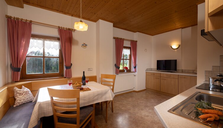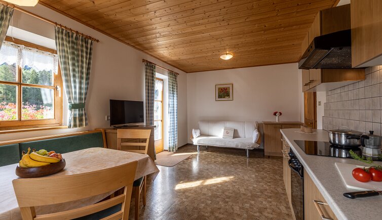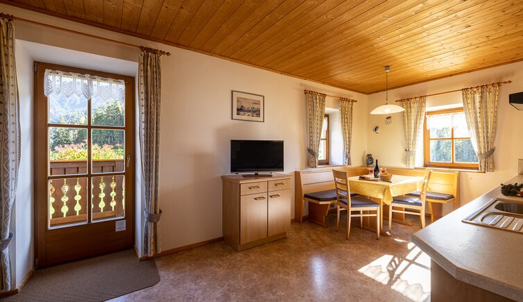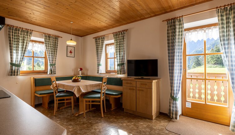 Sehr sonnig und ruhig gelegener Bauernhof auf 1083m Meereshöhe, verkehrsfrei am Waldrand gelegen, mit Blick auf die Geislerspitzen.